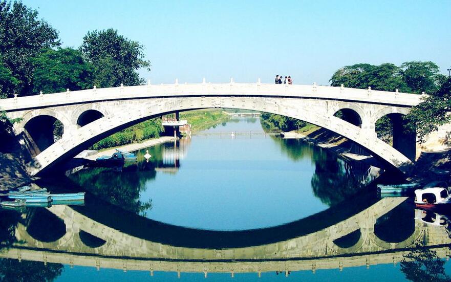 趙州橋原名安濟橋,俗稱大石橋,建于隋煬帝大業(yè)年間(595~605年),至今已有1400年的歷史,是當今世界上最古老的石拱橋。石拱橋是用石塊拼砌成彎曲的拱作為橋身,上面修成平坦的橋面,以行車走人。而趙州橋的特點是“敞肩式”,即在大拱的兩肩上再辟小拱,是石拱橋結構中最先進的一種。她是世界上現(xiàn)存年代最久、單孔跨度最大、保存最完整的一座敞肩型石拱橋,被世人公認為“天下第一橋”。趙州橋正名安濟橋,俗稱大石橋。其設計者是隋朝匠師李春。趙州橋是正常的交通運輸橋,它的橋身弧線優(yōu)美,遠眺猶如蒼龍飛駕,又似長虹飲澗。尤其具有藝術特色的是欄板以及望栓上的浮雕。充分顯示了隋代矯健、俊逸、渾厚、嚴整的石雕風貌。整個大橋堪稱一件精美的藝術珍品,稱得上是隋唐時代石雕藝術的精品。